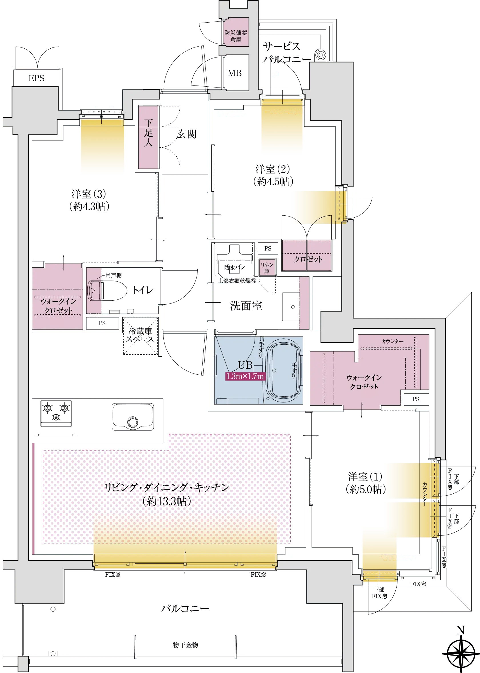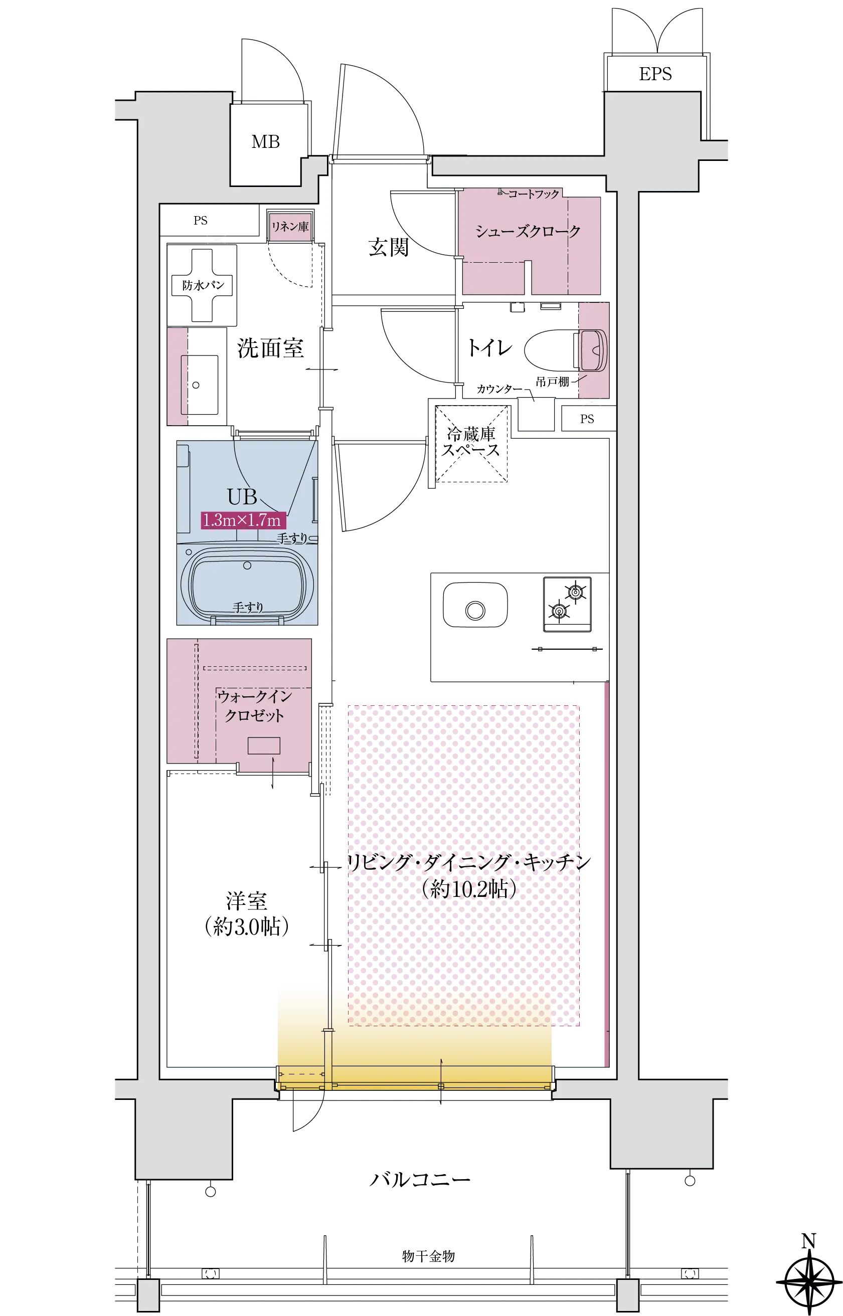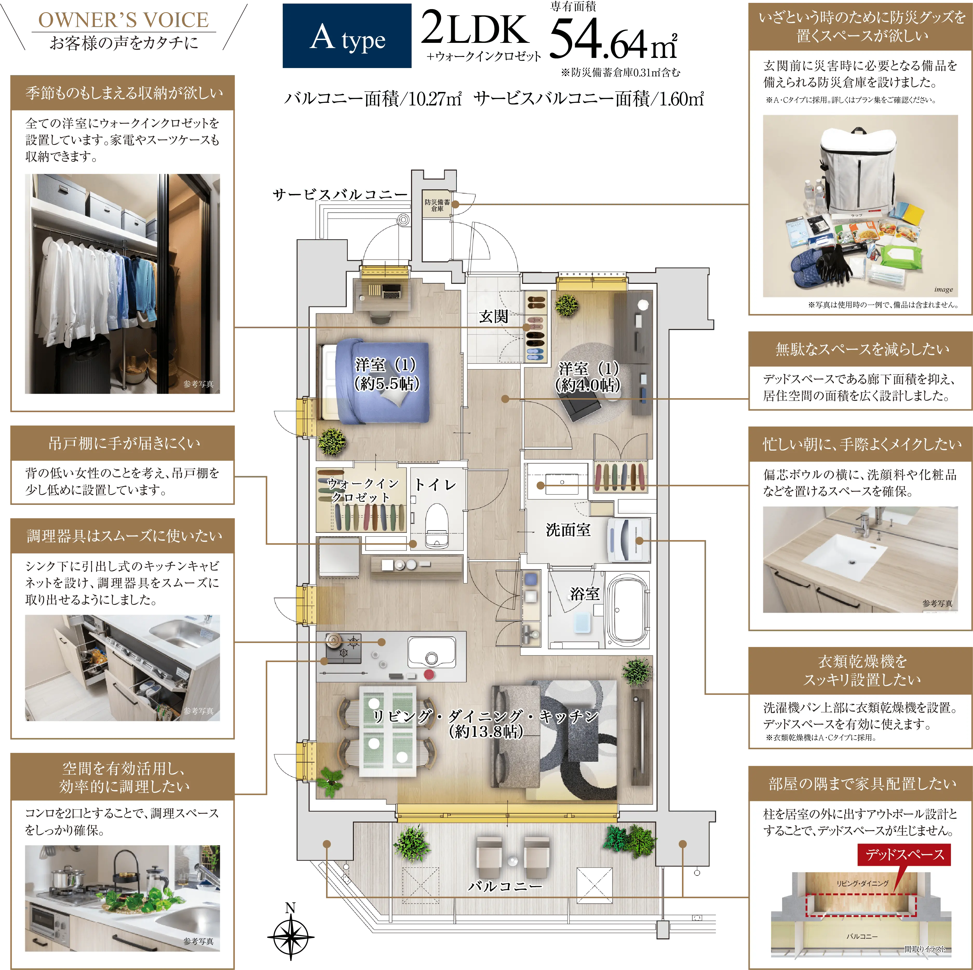 バルコニー面積/10.27㎡ サービスバルコニー面積/1.60㎡