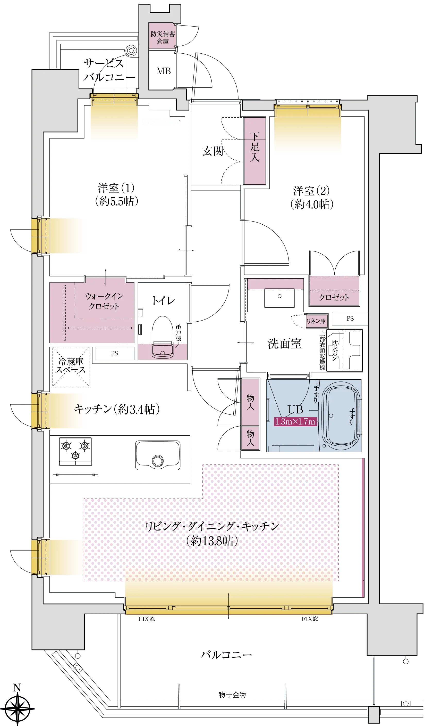バルコニー面積/11.47㎡ サービスバルコニー面積/2.02㎡