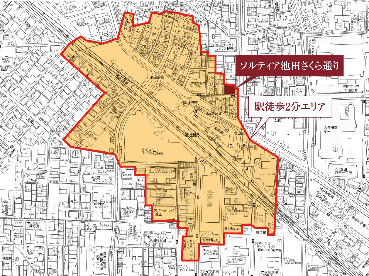 阪急「池田」駅徒歩2分エリア概念図