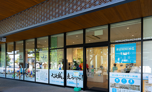 大阪城公園初となる「JO-TERRACE OSAKA」内のランナーサポート施設。ゆとりのロッカーとシャワーを完備されていて、お仕事前やお仕事帰りにランニングやウォーキングを楽しむことができます。
