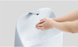 ボウルを深く大きくし、手洗いがしやすくなりました。大人から子どもまで使いやすい高さに設計しています。