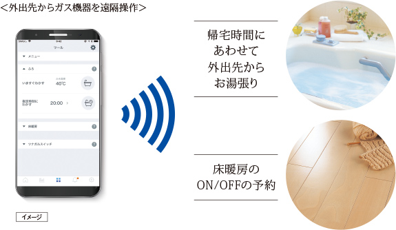 スマートフォンで外出先からガス機器を