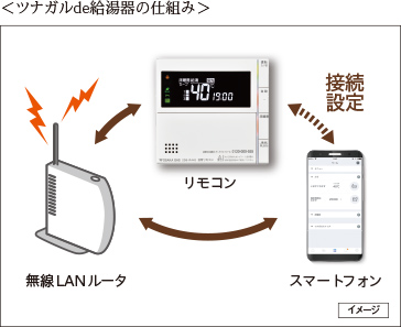 遠隔操作できる「ツナガルde給湯器」。