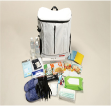 玄関前に災害時に必要となる備品を備えられる防災倉庫を設けました。※写真は使用時の一例で、備品は含まれません。
