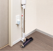 スティック型掃除機などの充電に便利なコンセントを収納内に設置しています。