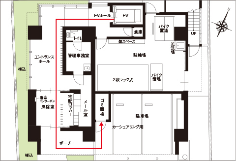 マンション入口から玄関扉に至るまで、