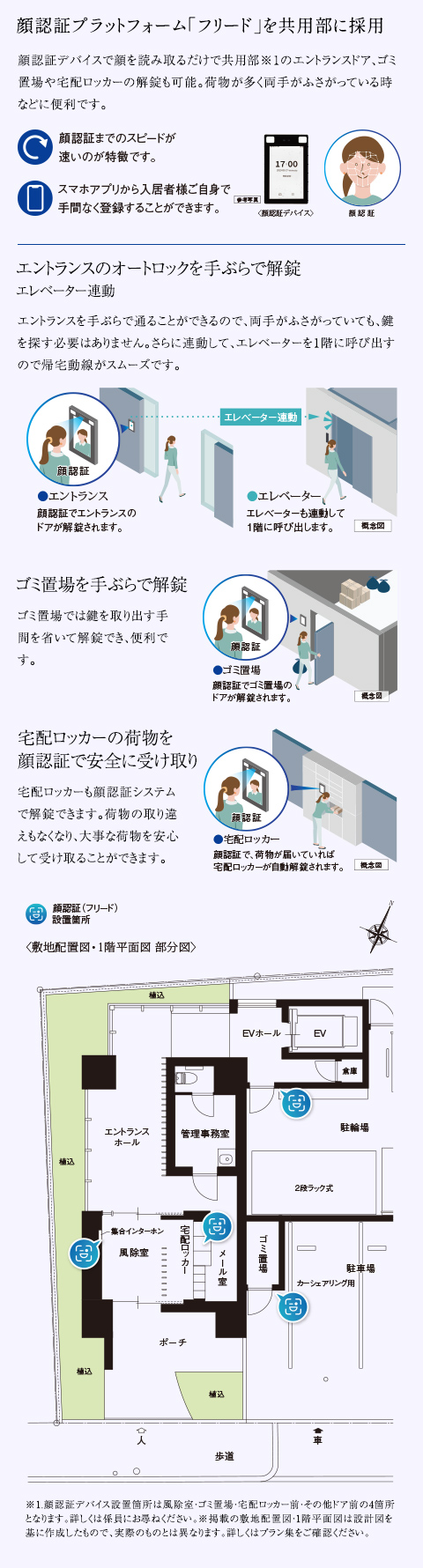 また、共用部には顔認証システムによる解錠で