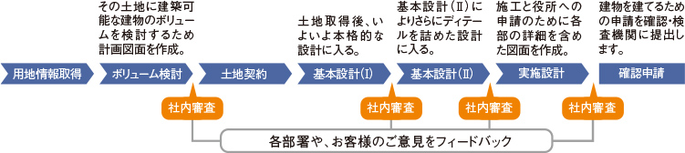 いくつもの設計段階を踏むとともに、段階ごとに社内審査を実施することにより、質の高い建物を提供しています。