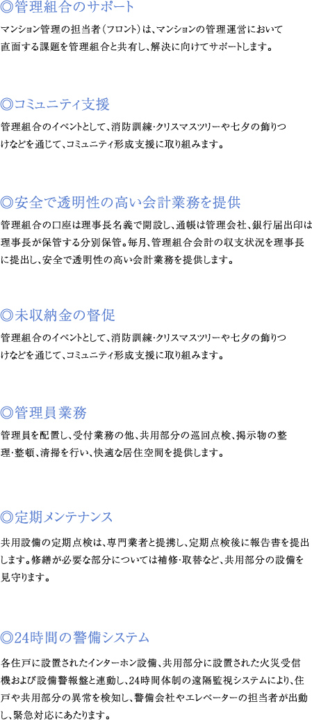 共用部分の点検や清掃の他、