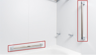 浴槽の出入りをサポートする手すりを設置しています。