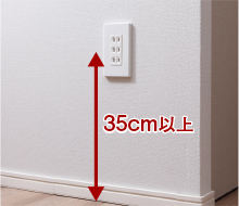 コンセントは、抜き差しをする時のかがむ動作に配慮し、床から35cm以上の高さに設置。コンセントの使い勝手を高めました。