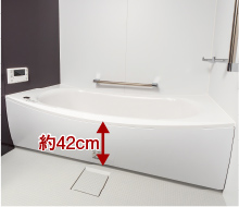 浴槽の出入りが楽にできるようにまたぎ高を約42cmに設定。浴槽底面にはノンスリップ加工も施しています。
