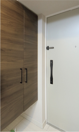 フルシーズンの靴を収納できるトールタイプの下足入を設置しました。傘立やスリッパ収納を備えるなど、玄関まわりをスッキリと演出する豊富な収納力です。