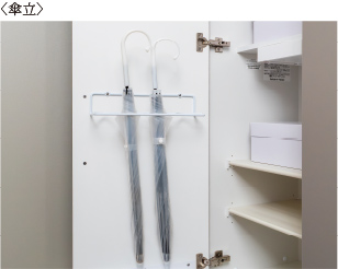 扉の内側に設けた傘立