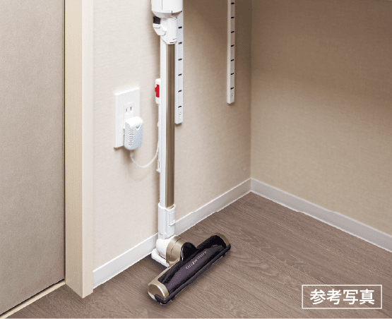 スティック型掃除機などの充電に便利なコンセントを収納内に設置しています。
