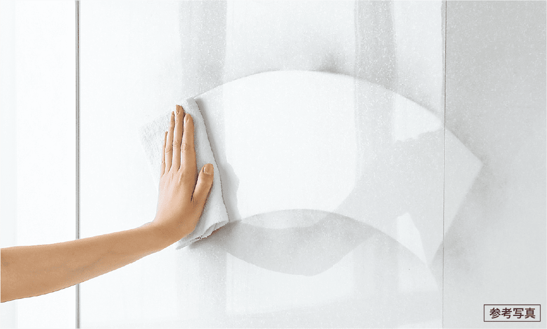 油汚れも簡単に拭きとれるホーローキッチンパネル。熱や傷に強く、ガラスを拭く感覚でお手入れ可能。清潔さを維持します。