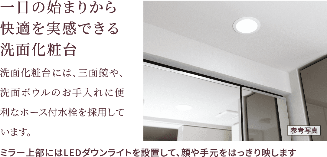 毎日使うバスルームには、使い勝手に配慮したさまざまな機能を盛り込みました。きっと洗練された上質な暮らしを実感いただけるでしょう。
