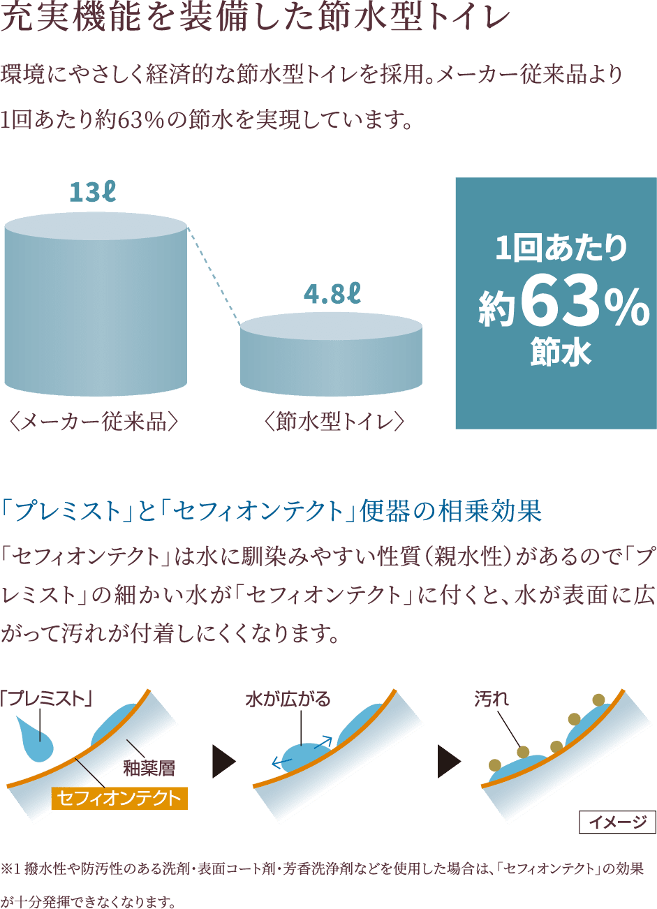 シャワーヘッドと簡単操作のタッチ水栓の組み合わせで節湯効果を高めます。