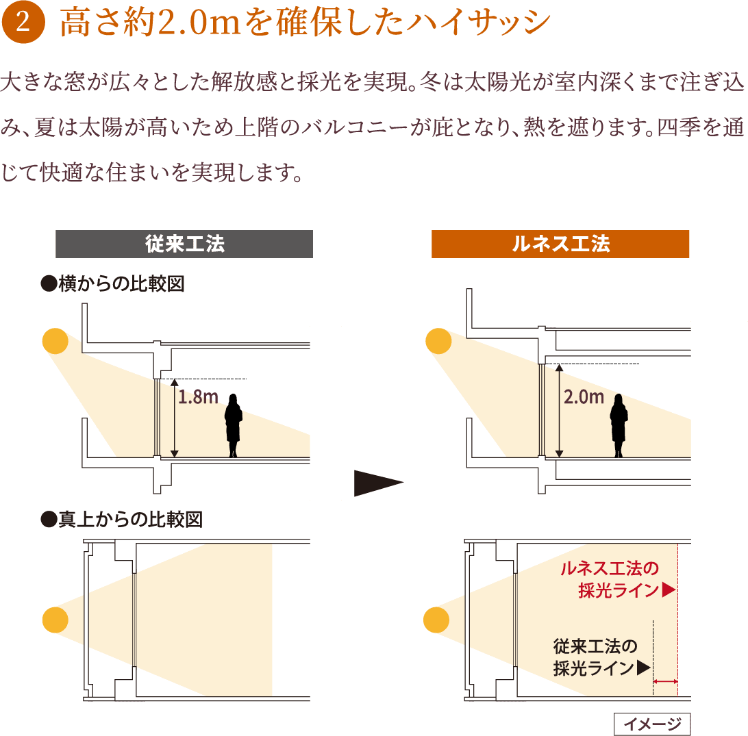 眺望や太陽の恵みを満喫できる設計をはじめ、