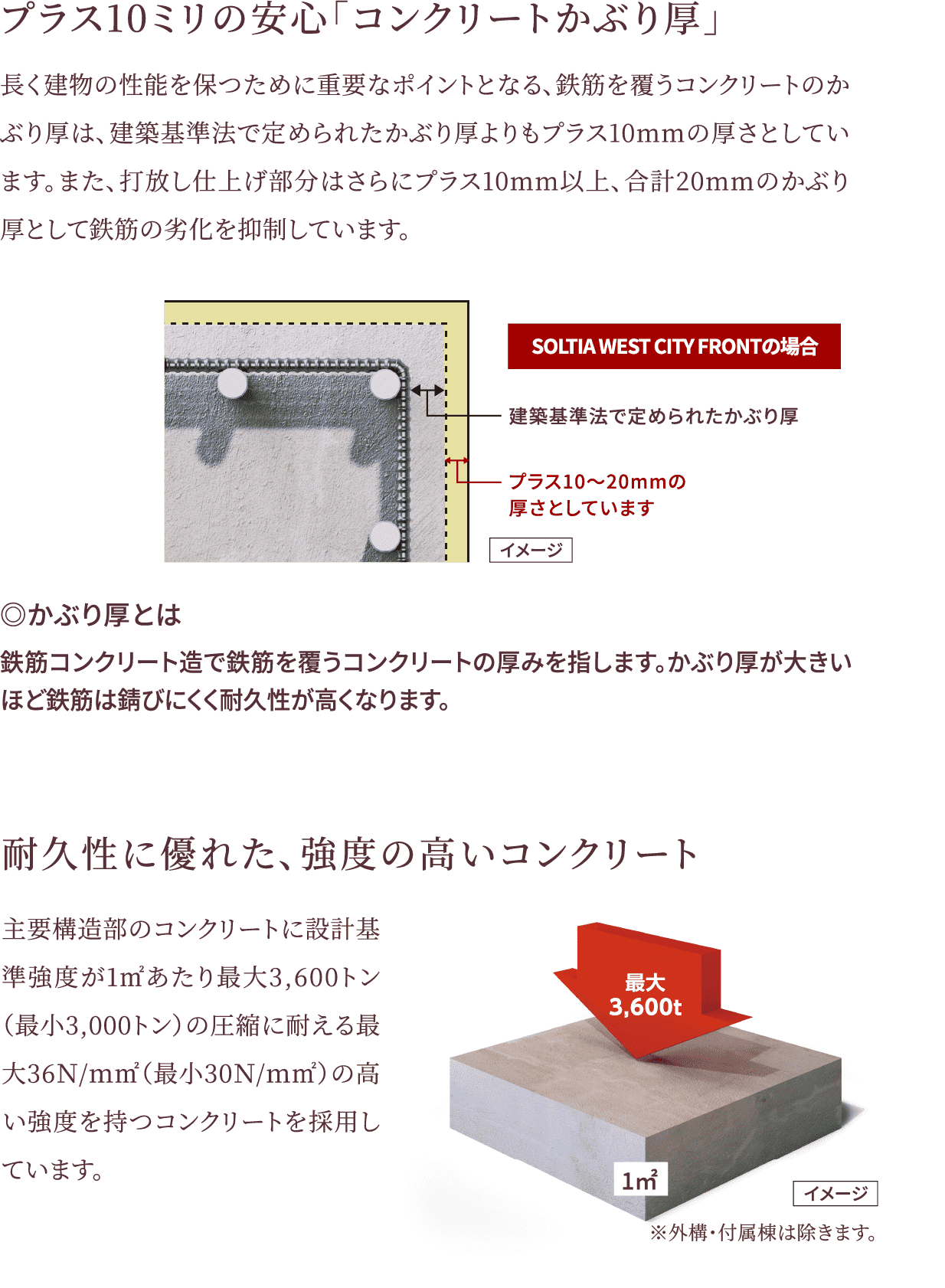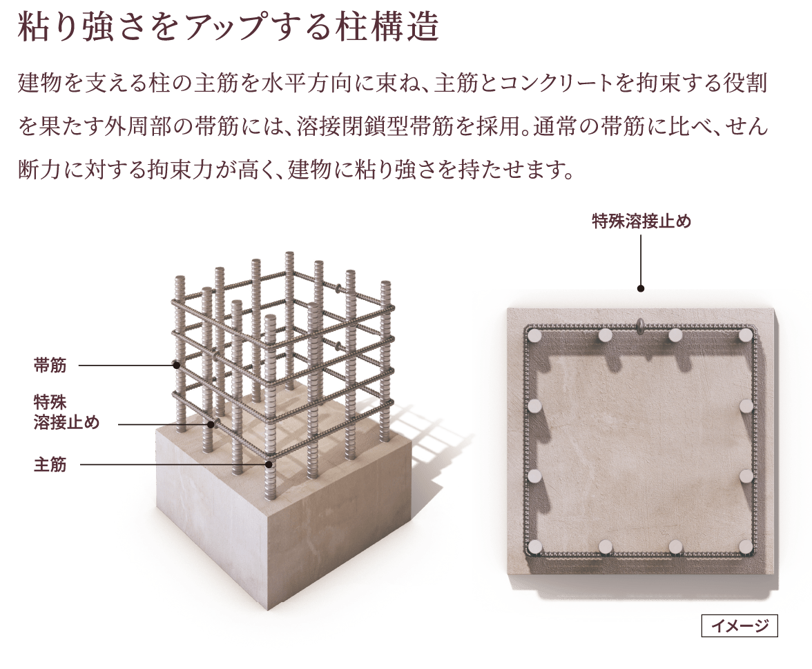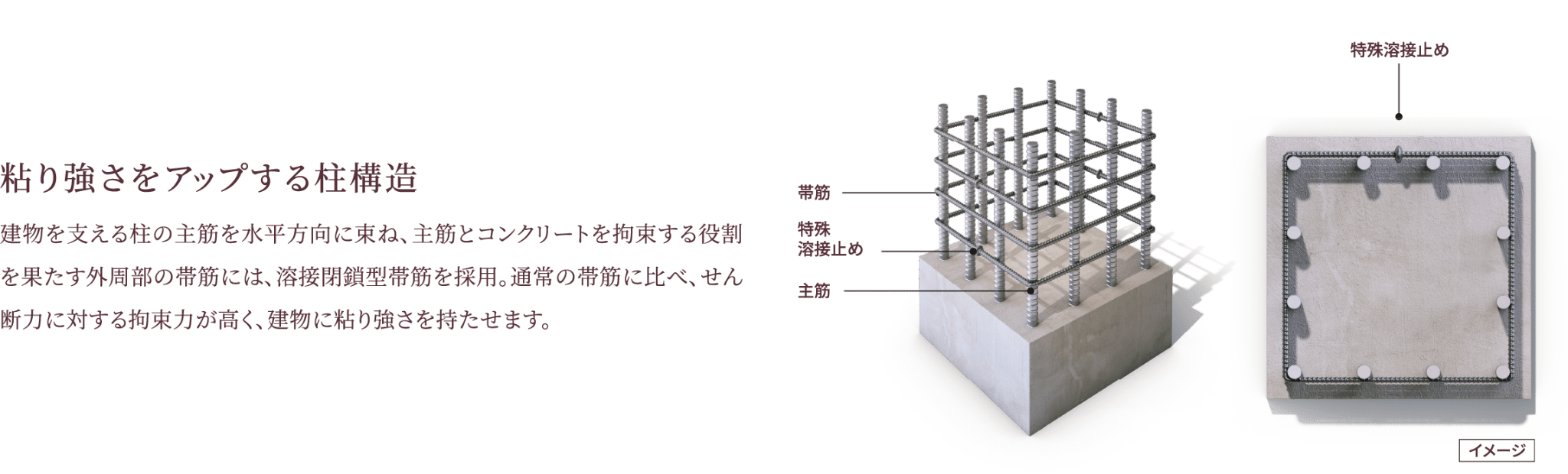 SOLTIA WEST CITY FRONTは、さまざまな部位で耐震・耐久性の高い仕様を採用しています。