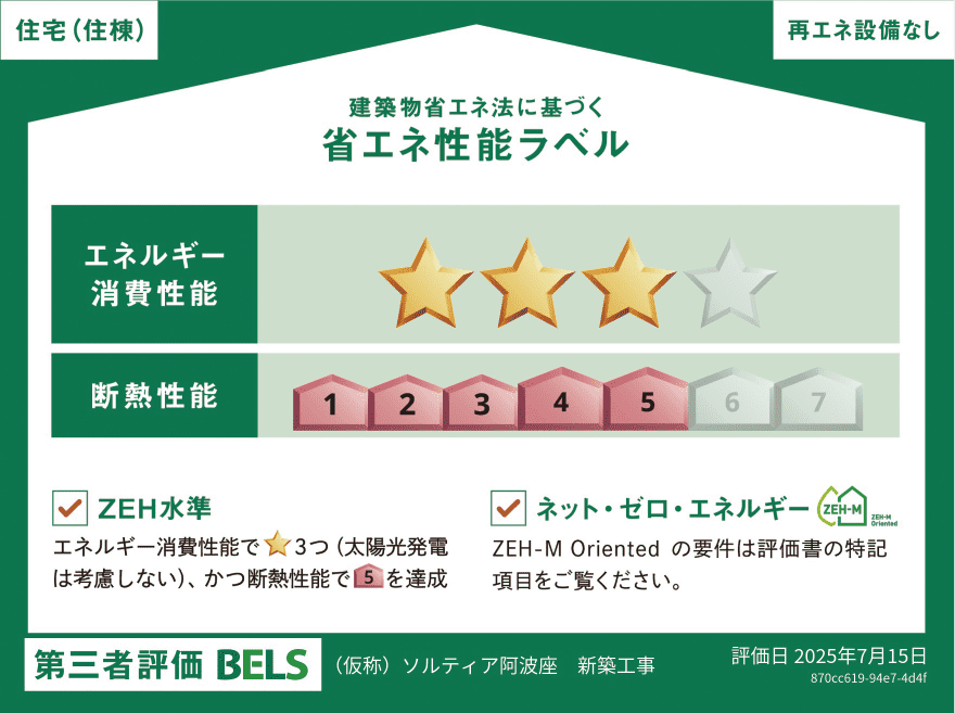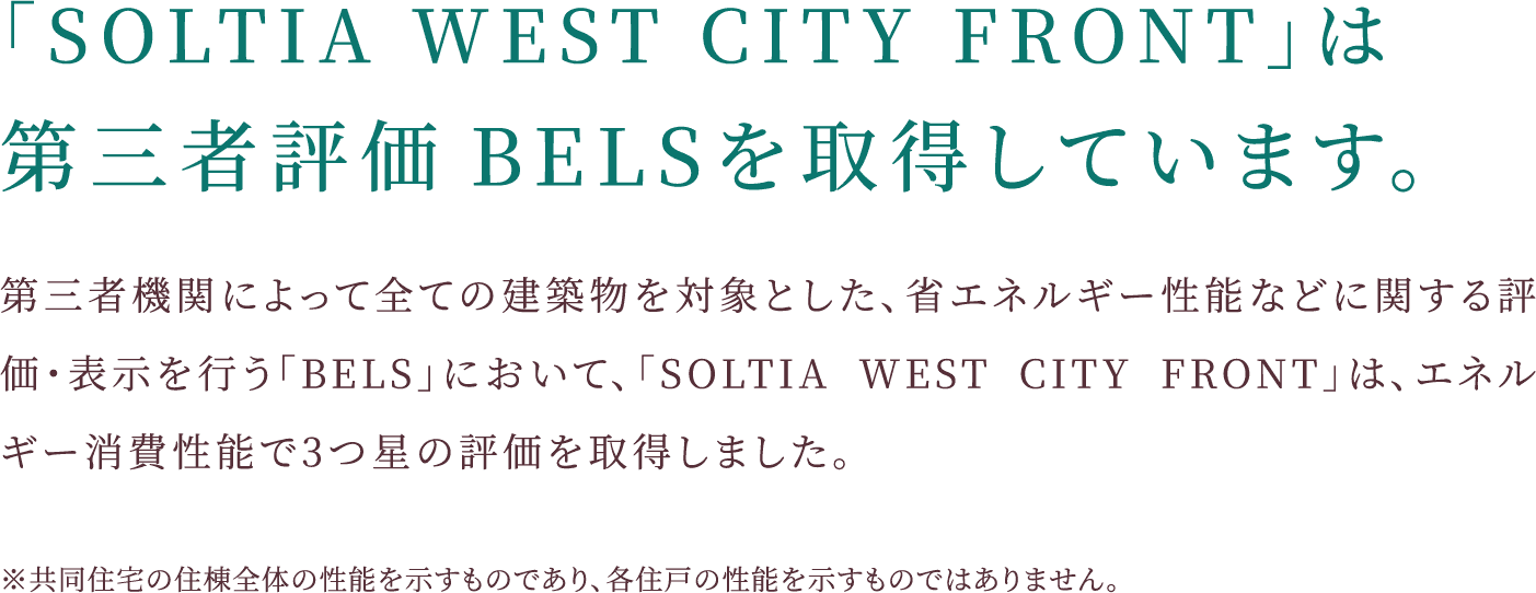 SOLTIA WEST CITY FRONTは、設計図書内容で性能を評価する「設計住宅性能評価書」、実際の建物が設計図書どおりに施工されているかを評価する「建設住宅性能評価書」を取得予定です。