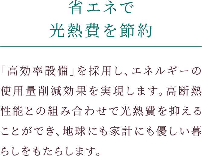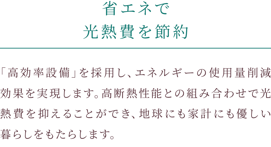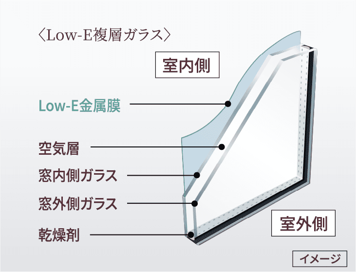 窓には特殊金属膜の適度な遮熱効果で冬場の暖房負荷を低減するLow-E複層ガラスを採用。冷暖房効率を高めると同時にガラス面の結露も抑えます。