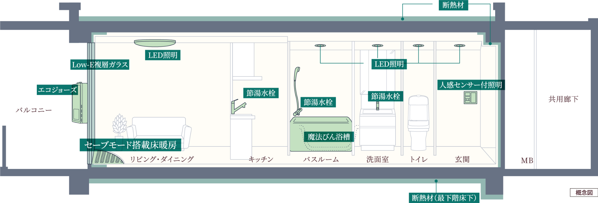 省エネルギー性に優れたLED仕様の照明器具を採用しています。