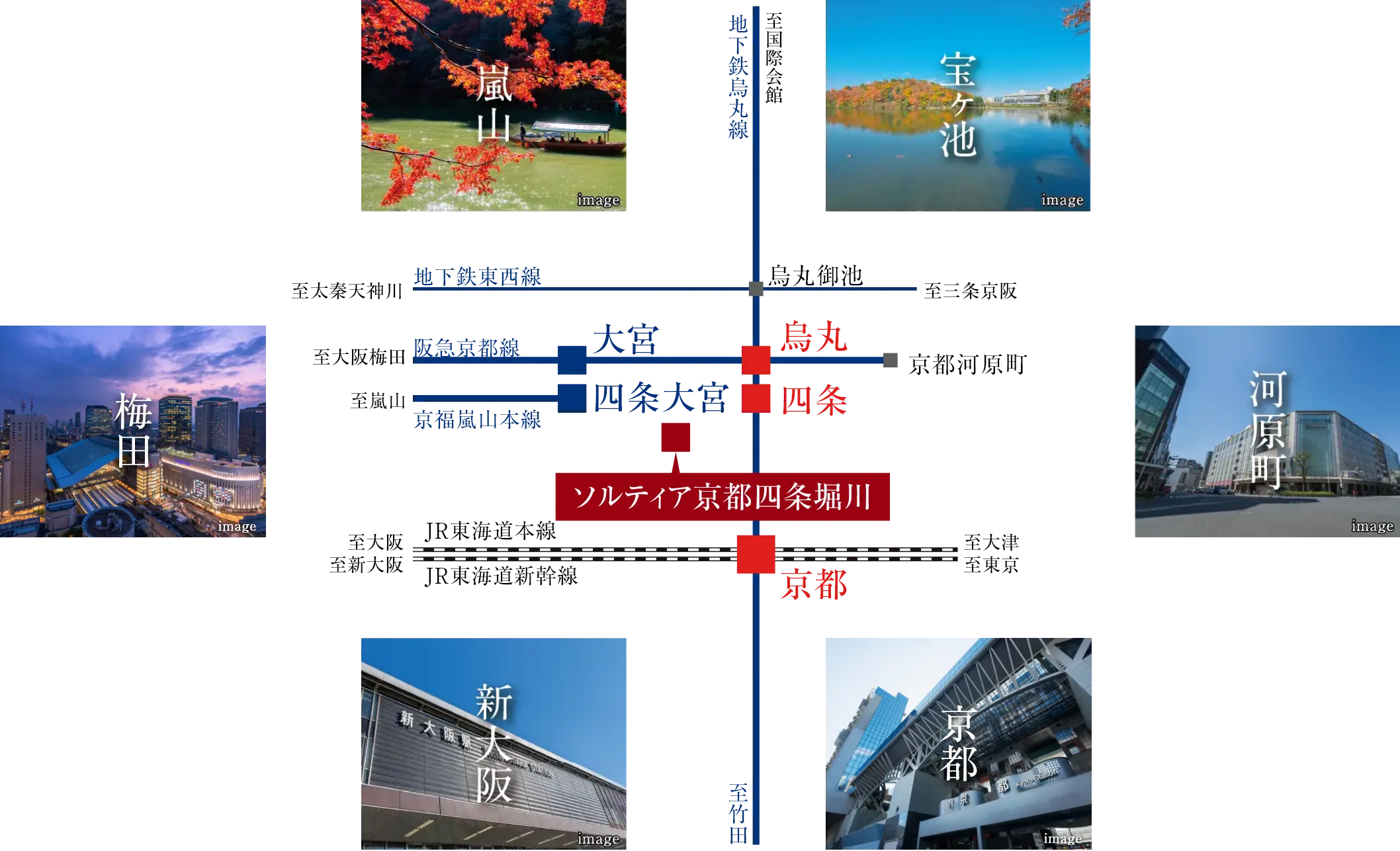 京都駅や嵐山方面へ、 さらに大阪の都心へ。